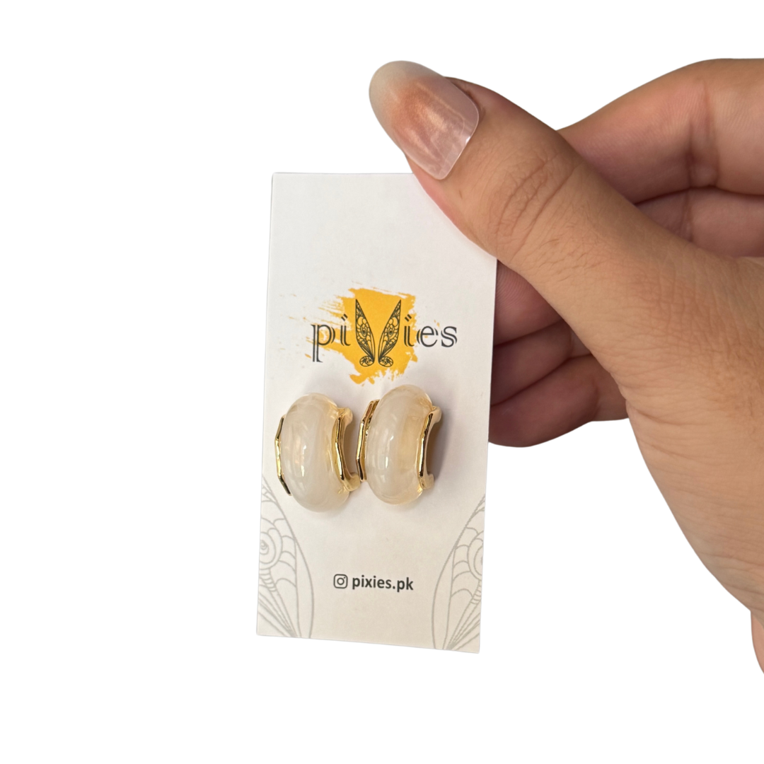White marble-style studs bring effortless sophistication with their sleek marble-effect design. The soft white tones paired with a polished finish create a versatile accessory that complements both casual and formal outfits. Lightweight and elegant, they add a subtle statement of modern charm to everyday wear or special occasions.