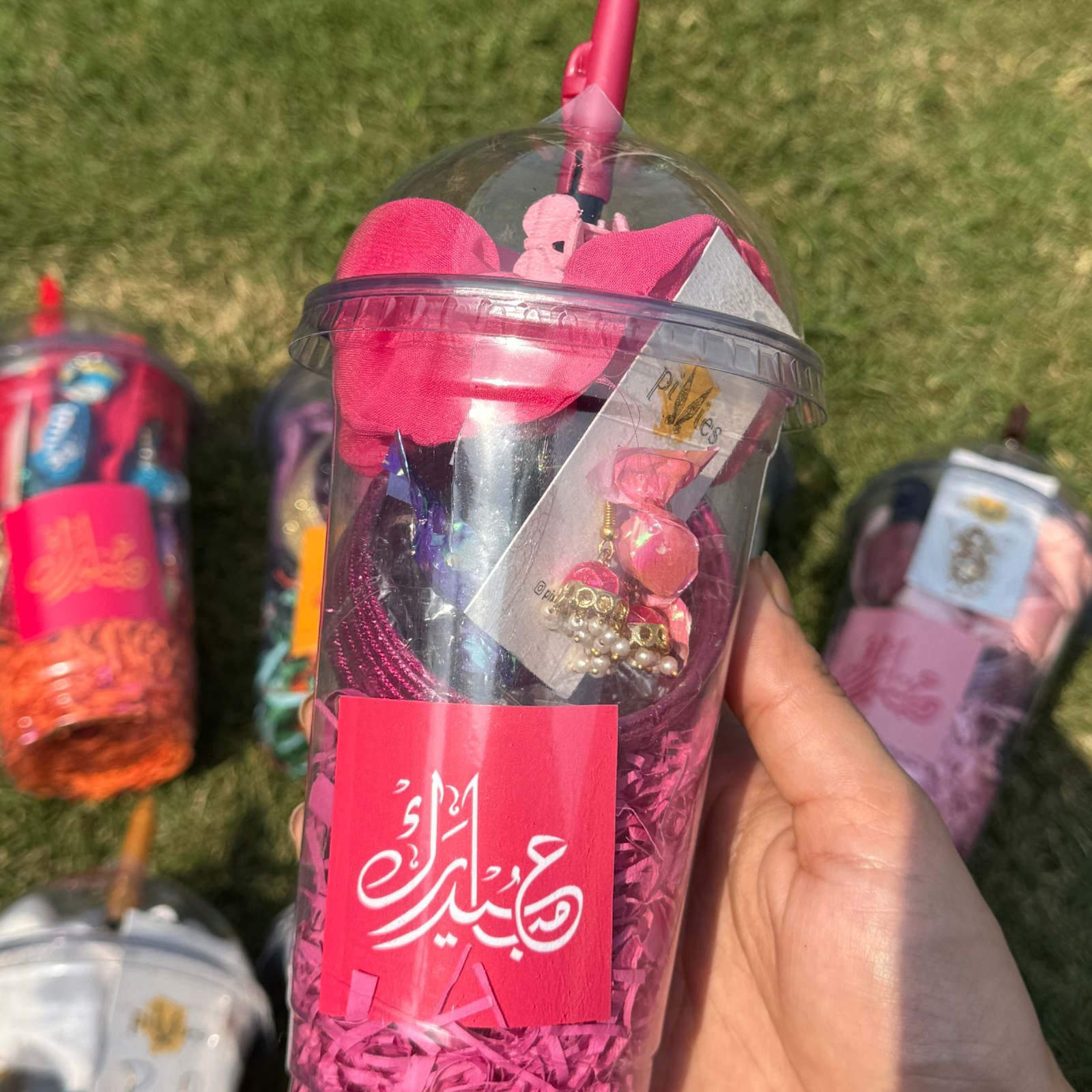 ITEMS( Bangles, jhumkey, color pencil, nail polish, scrunchies, cocomo, candies, eid mubarak card)