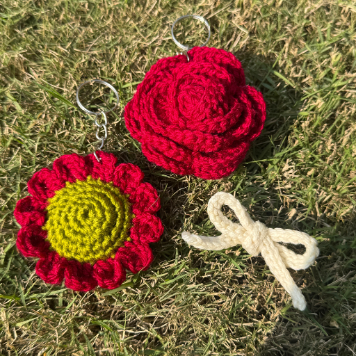 Crochet Keychains ( Rose, Sunflower, Bow Tie)