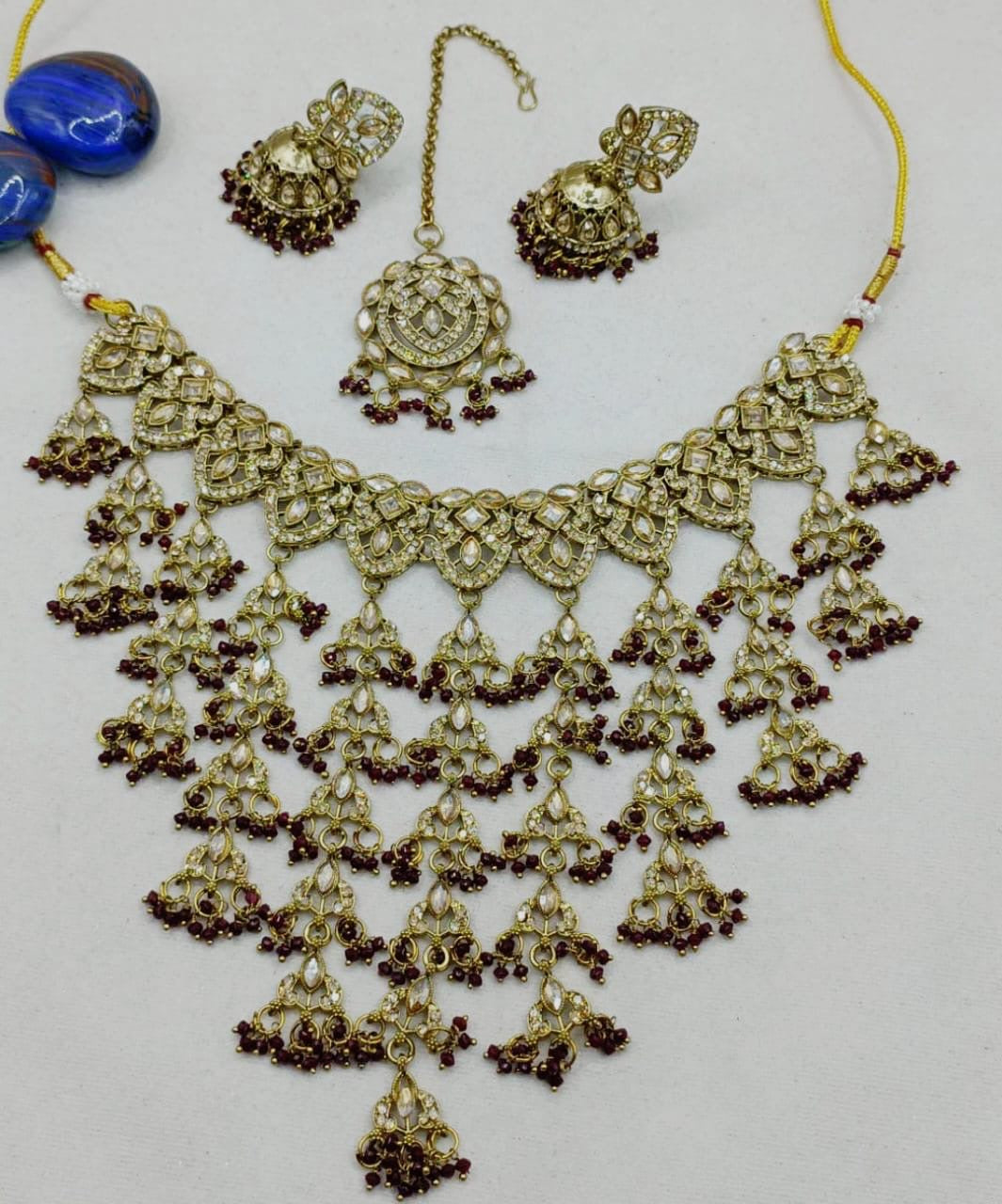 A statement jewelry set featuring sleek, flowing tassels that add instant elegance and movement. Designed to complement both festive and western looks, this set is lightweight, graceful, and perfect for evening wear, parties, and special occasions.